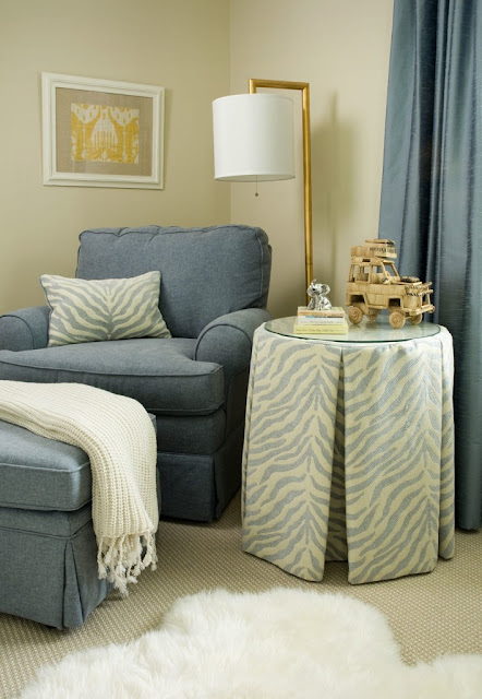 Qué chula! ese azul es precioso y combinado con el beige me encanta, me lo apunto, el cesto, la jirafa, esos cojines en estampado azul, está todo ideal. Besitos y feliz fin de semana.